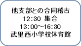 13:00〜15:00 15〜16 強化稽古 武里西小学校体育館 |